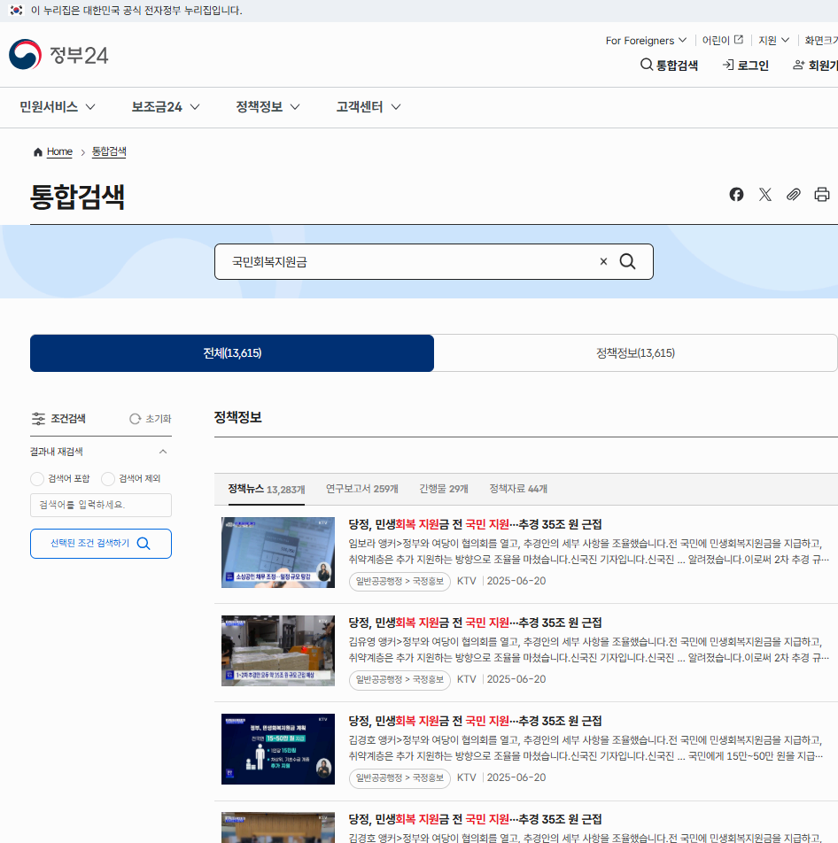 | [7월 긴급] 민생회복지원금 25만원 소비쿠폰 지급! 신청 조건 총정리 (스미싱 주의) (0) | 2025.07.06 |
